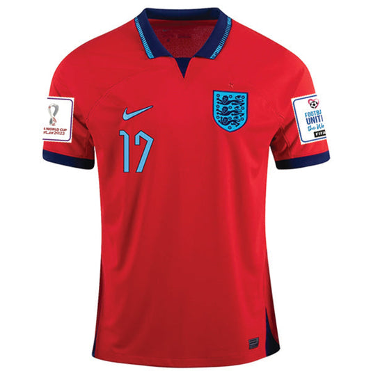 Nike England Raheem Sterling Away Jersey 22/23 w/ World Cup 2022 Patches (Challenge Red/Blue Void)