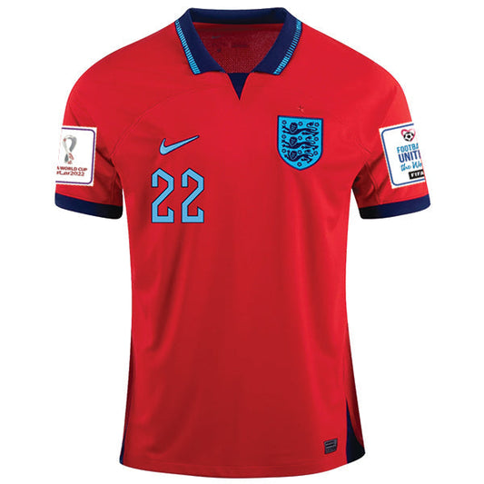 Nike England Mason Mount Away Jersey 22/23 w/ World Cup 2022 Patches (Challenge Red/Blue Void)