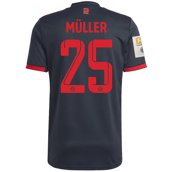 adidas Bayern Munich Thomas Muller Third Jersey w/ Bundesliga +10 Times Winner Patches 22/23 (Night Grey)