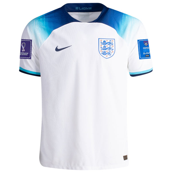 Nike England Authentic Match Home Jersey 22/23 w/ World Cup 2022 Patches (White/Blue Fury/Blue Void)