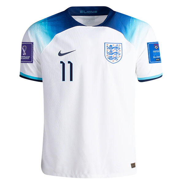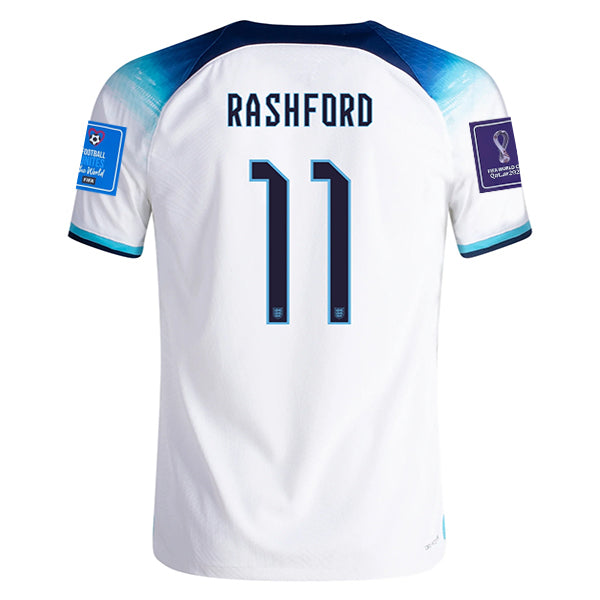 Nike England Marcus Rashford Authentic Match Home Jersey 22/23 w/ World Cup 2022 Patches (White/Blue Fury/Blue Void)