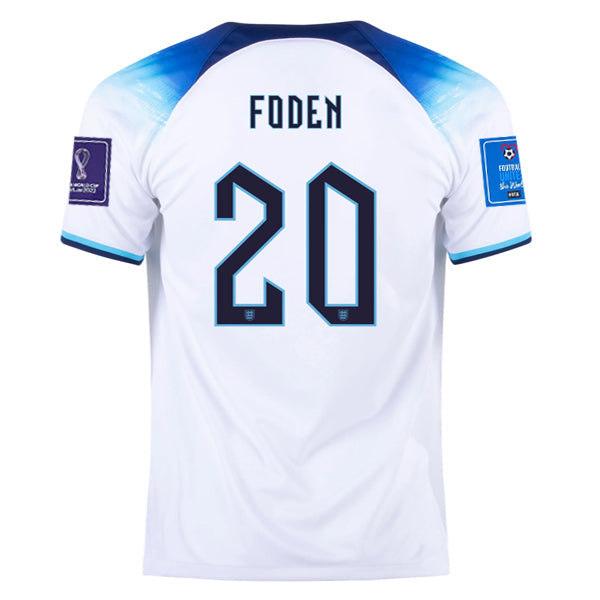 Nike England Phil Foden Authentic Match Home Jersey 22/23 w/ World Cup 2022 Patches (White/Blue Fury/Blue Void)