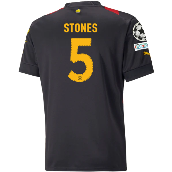 Puma Manchester City John Stones Away Jersey w/ Champions League Patches 22/23 (Puma Black/Tango Red)